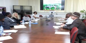 AfDB VP Jennifer Blanke in a round-table discussion with IITA senior management staff